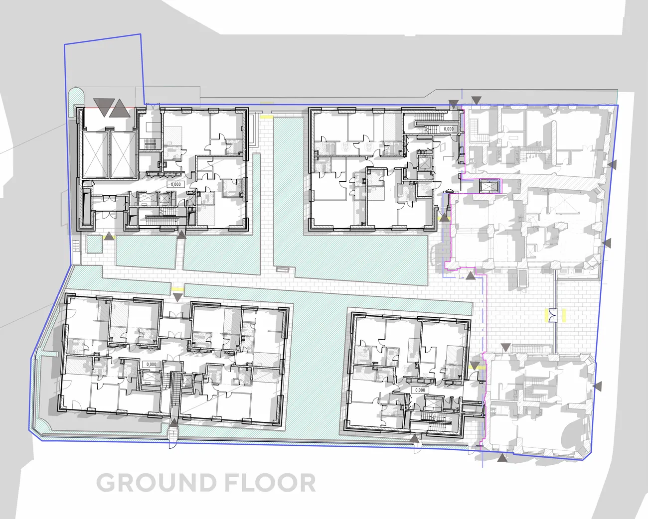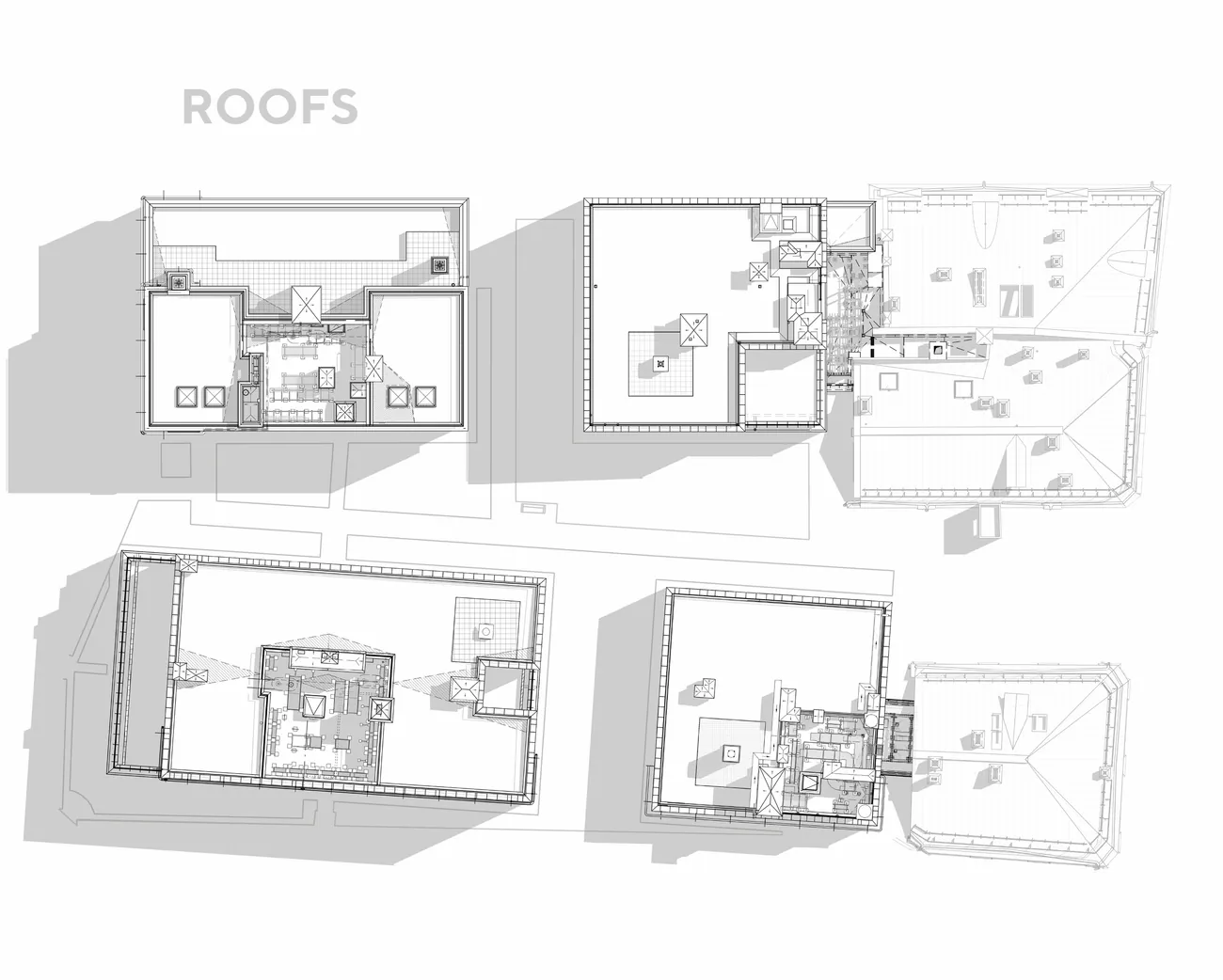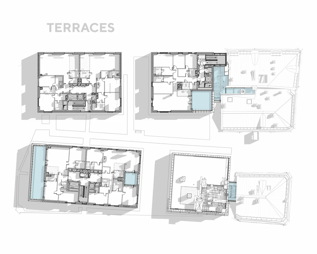 The primary challenge lays within the complex process of integrating 19th-century buildings with contemporary residences. The architectural solution focused on preserving historical identity while creating an elite residential environment with the highest level of comfort. The facades of the new buildings are clad in granite, with the ground floor designed with a characteristic "skirt" slope, harmonising the ensemble with the historic surroundings. Arched openings and glazed facades echo the architectural language of the restored mansions. Glass-enclosed passages provide an organic link between the new and historic volumes. Each residence features private patios and landscaped terraces, creating the atmosphere of a secluded home in the very heart of the metropolis.