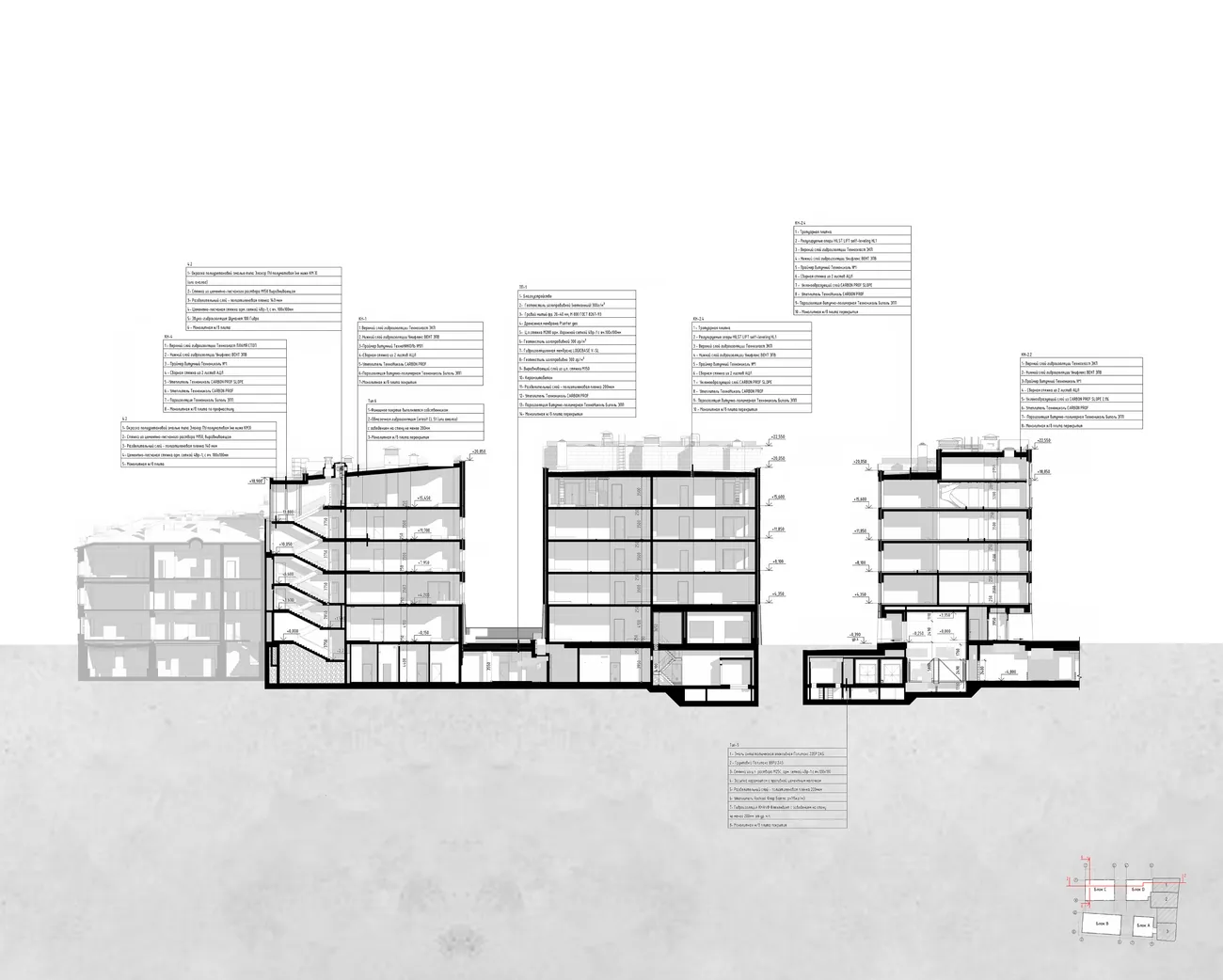 Special attention was given to the planning logic of apartments, the architectural expressiveness of facades, and the accuracy of construction documentation. The key part of work involved regulatory calculations of insolation and natural lighting (daylight factor), the development of functional layouts, and compliance with fire safety requirements - all ensuring that the project met modern standards for residential environments.