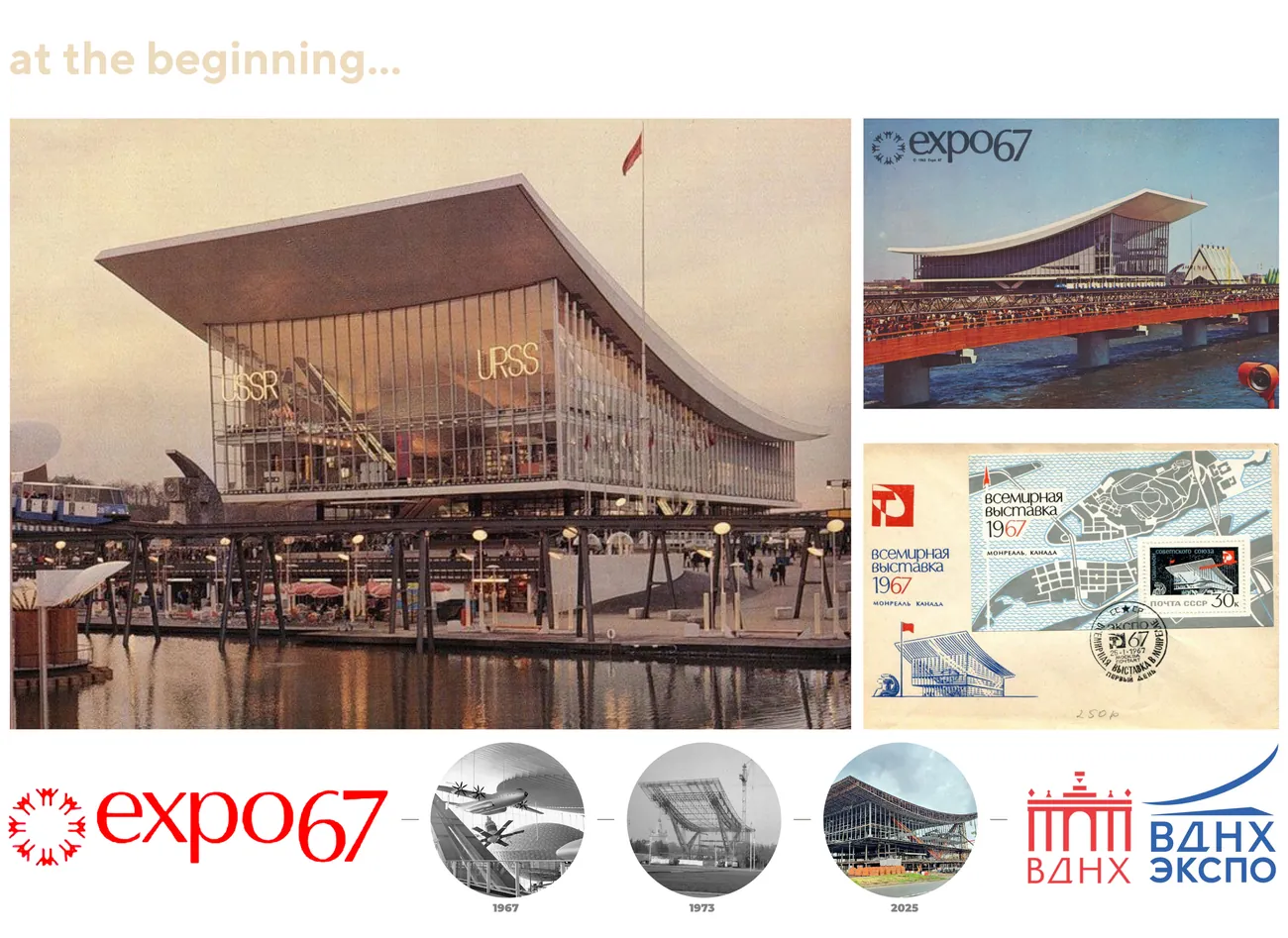 Montreal pavilion is a unique cultural heritage project. After a complicated journey, transported piece by piece by sea and land from Montreal (Canada, Expo'67), it was reassembled in Moscow in 1976 and has been preserved almost in it's original state.