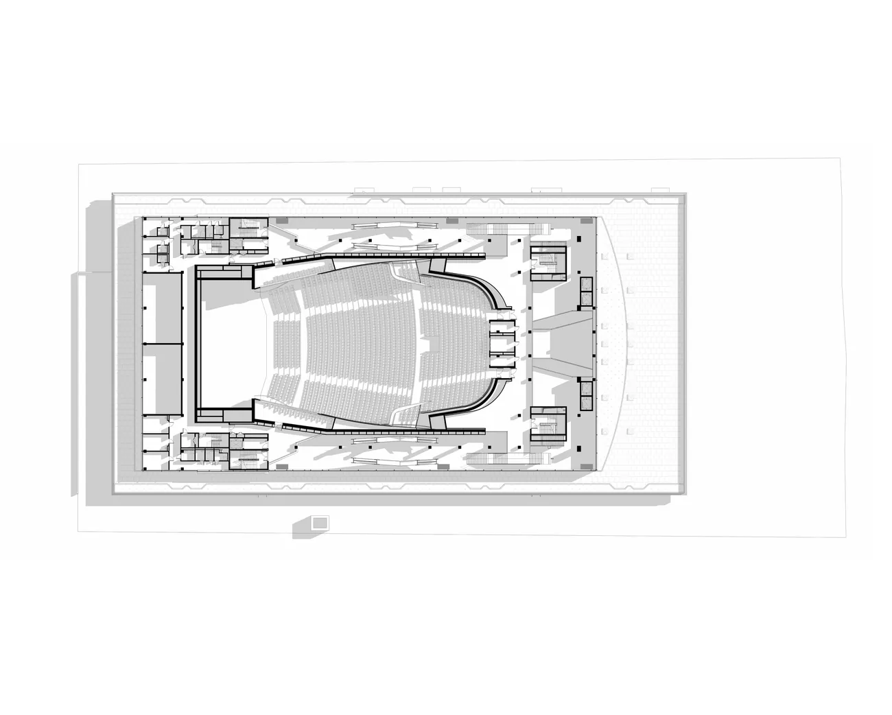 The central element of the complex is a 2500-seat congress and concert hall. Its construction is placed between the supports and the roof without disturbing the historical load-bearing elements. Modern equipment allows the venue to host a variety of event: conferences, forums, concerts, and theatrical performances.