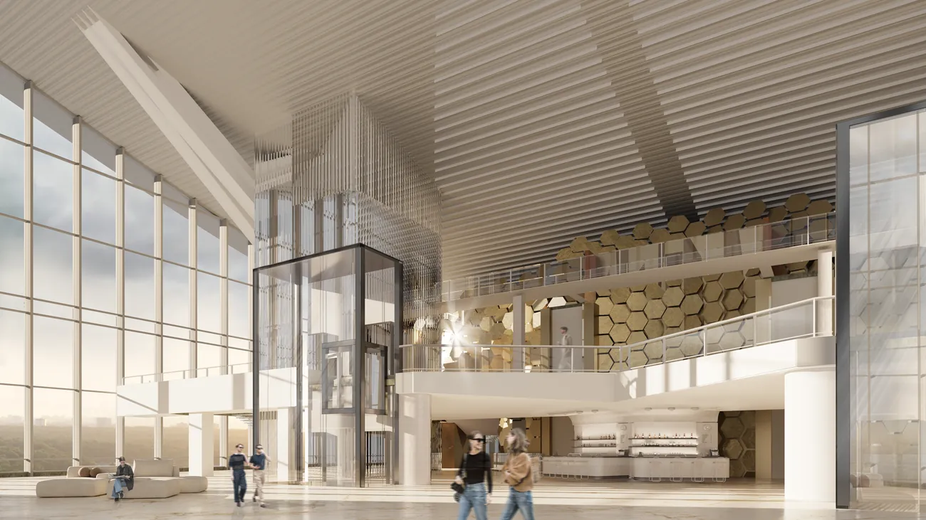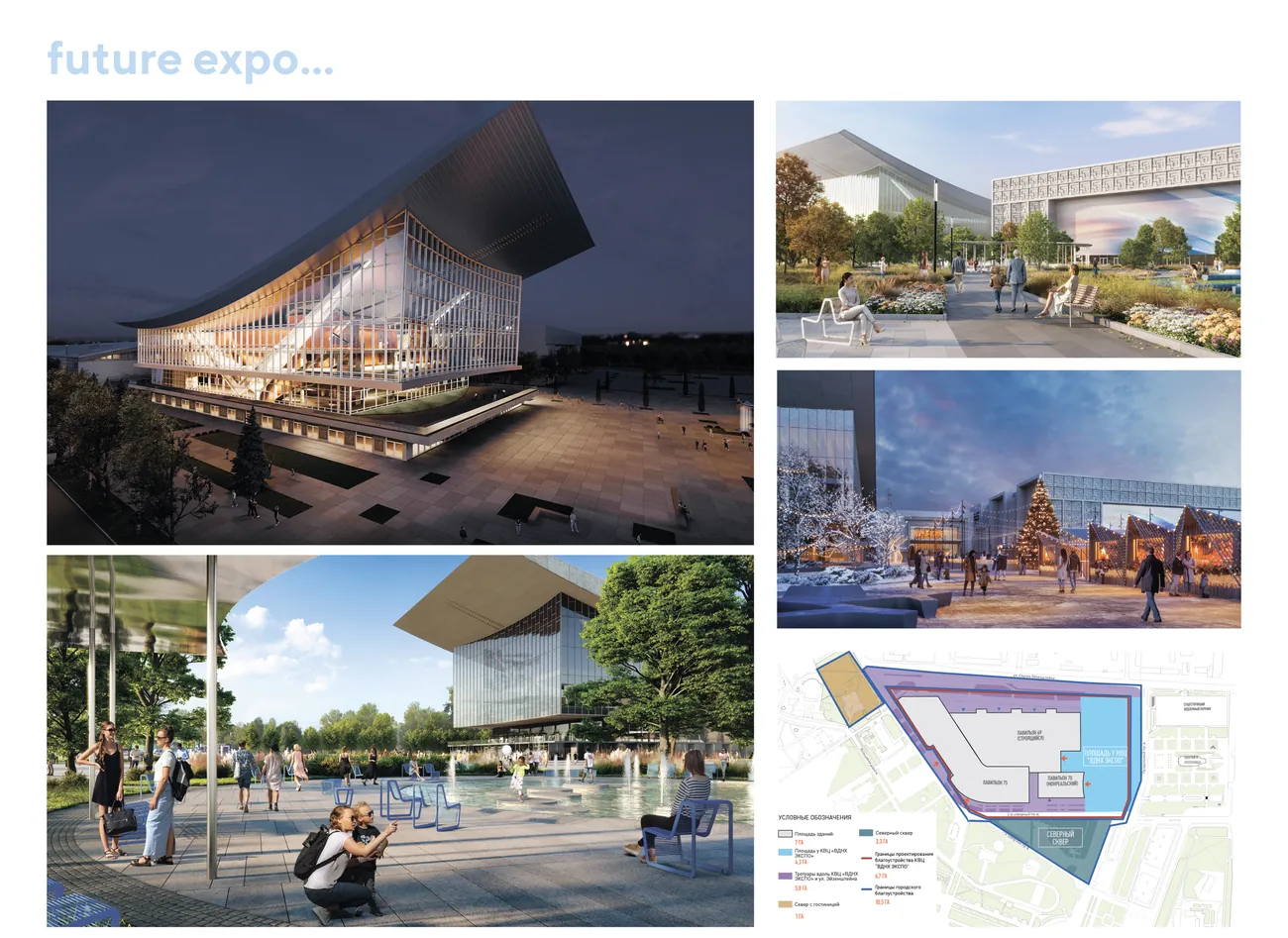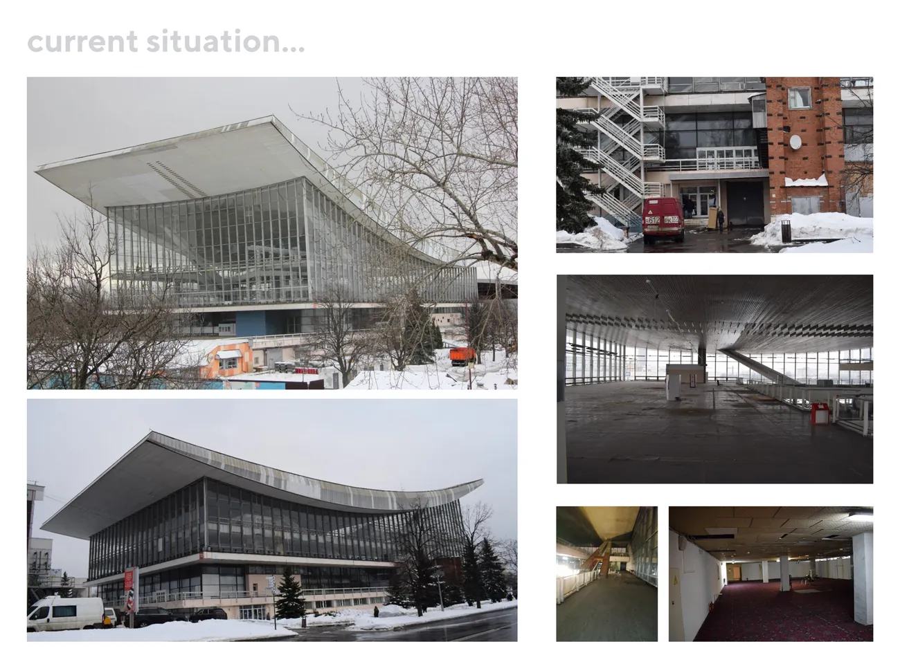 The project envisions transforming the Montreal Pavilion into a unified congress and concert centre. While preserving the historic character and unique engineering solutions of the 20th century, the building is reimagined as a modern space for business and cultural life, connecting people and ideas.