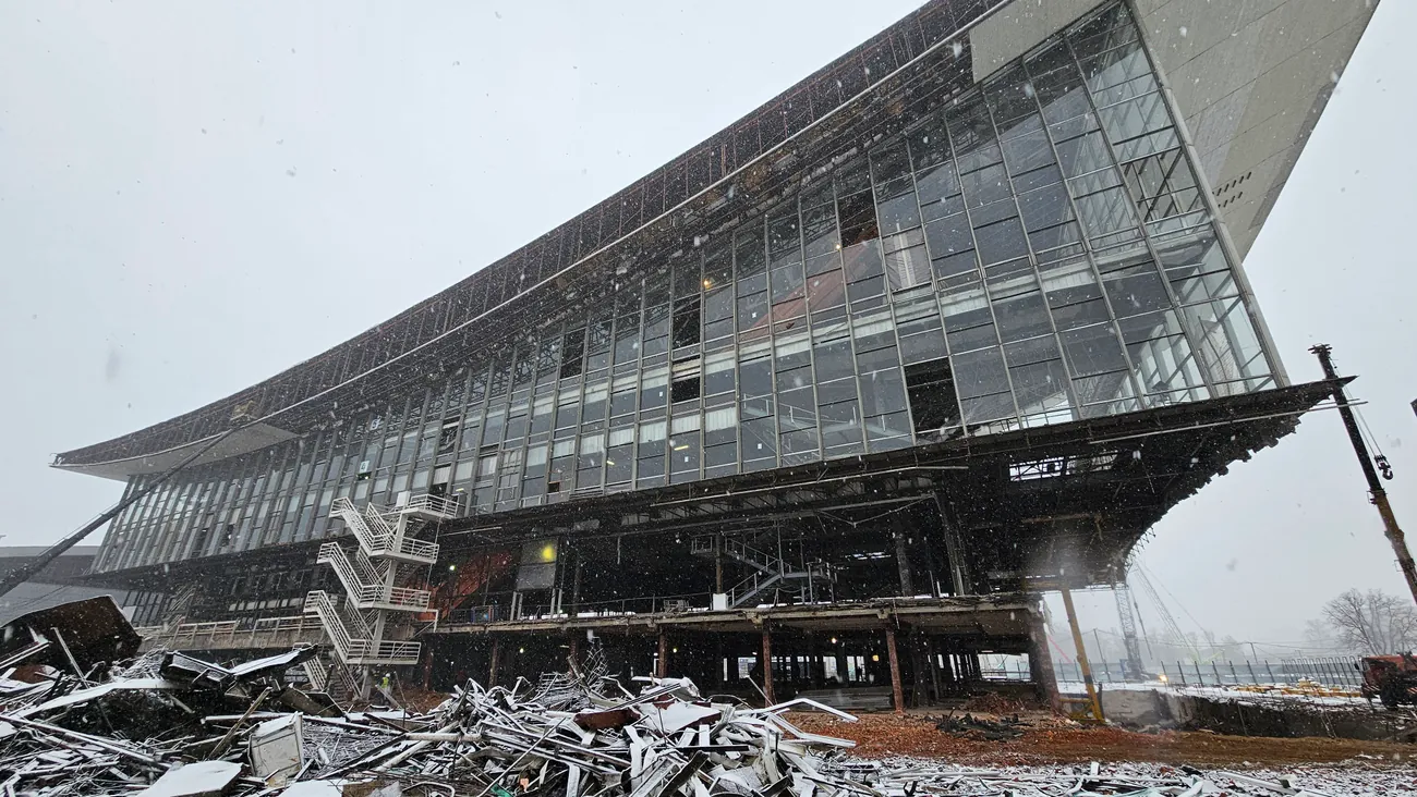 The architecture was shocking in scale: four levels connected by eight escalators, reaching a maximum of 42m, with a total exhibition area of 13,000m². The 10,000m² roof, shaped like the hypotenuse of a giant triangle, was supported by only two V-shaped columns. A suspended glass facade up to 28m high enhanced the sense of lightness and dynamism. Even today, this engineering solution remains unique in world architecture.
